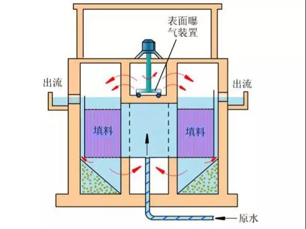 活性污泥附在填料表面,不會隨水流動,因生物膜直接受到上升氣流的強烈攪動,不斷更新,從而提高了凈化效果。生物接觸氧化法具有處理時間短、體積小、凈化效果好、出水水質(zhì)好而穩(wěn)定、污泥不需回流也不膨脹、耗電小等優(yōu)點。