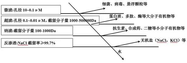 對(duì)Na+和Cl- 等單價(jià)離子的截留率較低,但對(duì)Ca2+、Mg2+、SO42-等二價(jià)離子及除草劑、農(nóng)藥、色素、染料、抗生素、多肽和氨基酸等小分子量(200-1000)物質(zhì)的截留率很高,而且水在納濾膜中的滲透速率遠(yuǎn)大于反滲透膜,所以當(dāng)需要對(duì)低濃度的二價(jià)離子和分子量在500到數(shù)千的溶質(zhì)進(jìn)行截留時(shí),選擇納濾比使用反滲透經(jīng)濟(jì)。