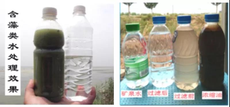 左圖是湖泊治理的過(guò)濾效果,右圖是含油污水的過(guò)濾效果